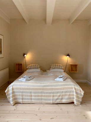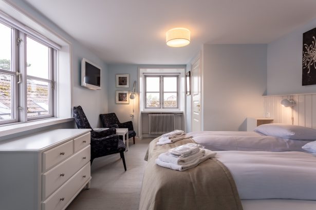 Dobbeltværelserne med eget bad og toilet er hyggeligt indrettet med egen charme og sjæl.